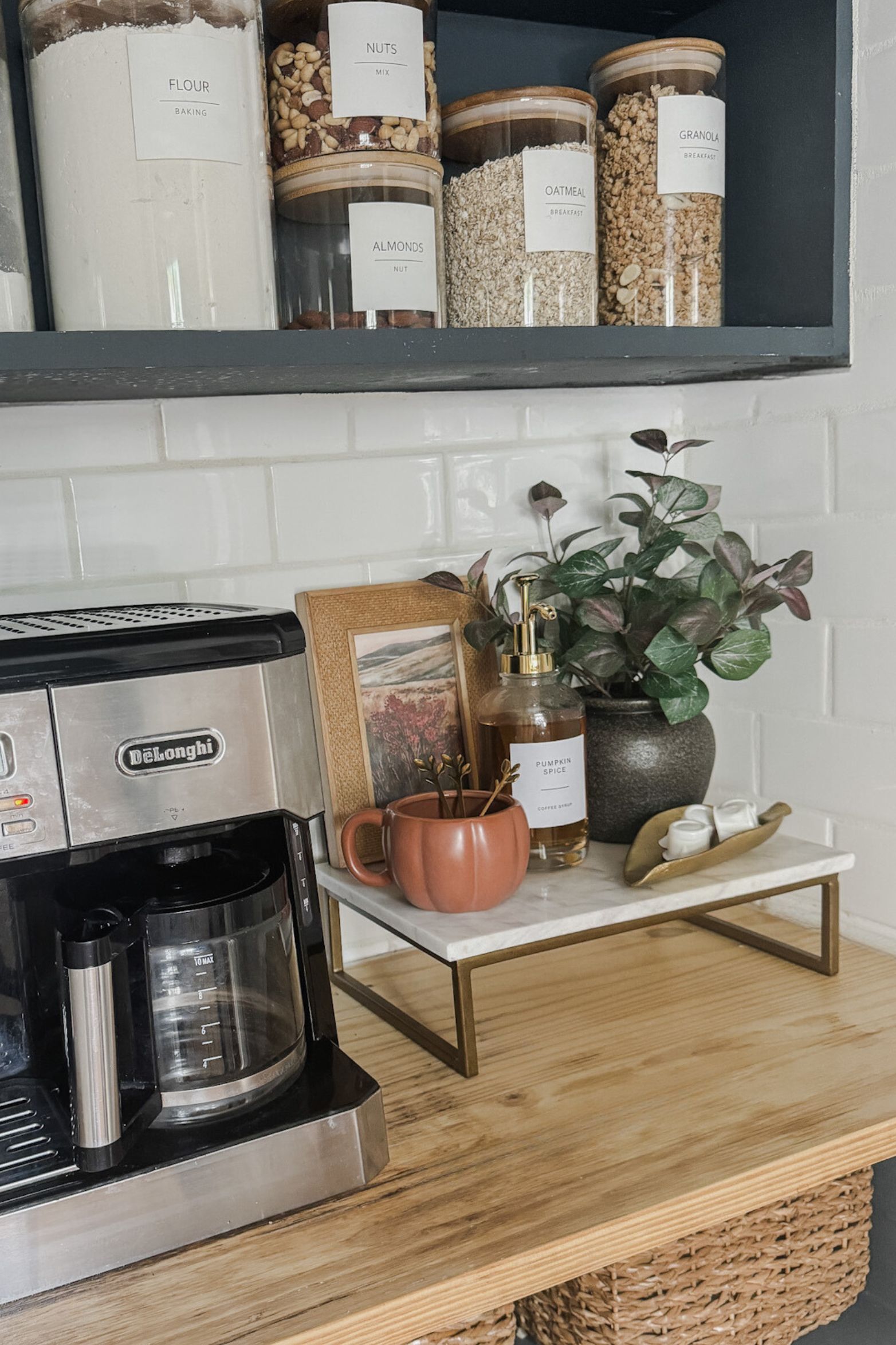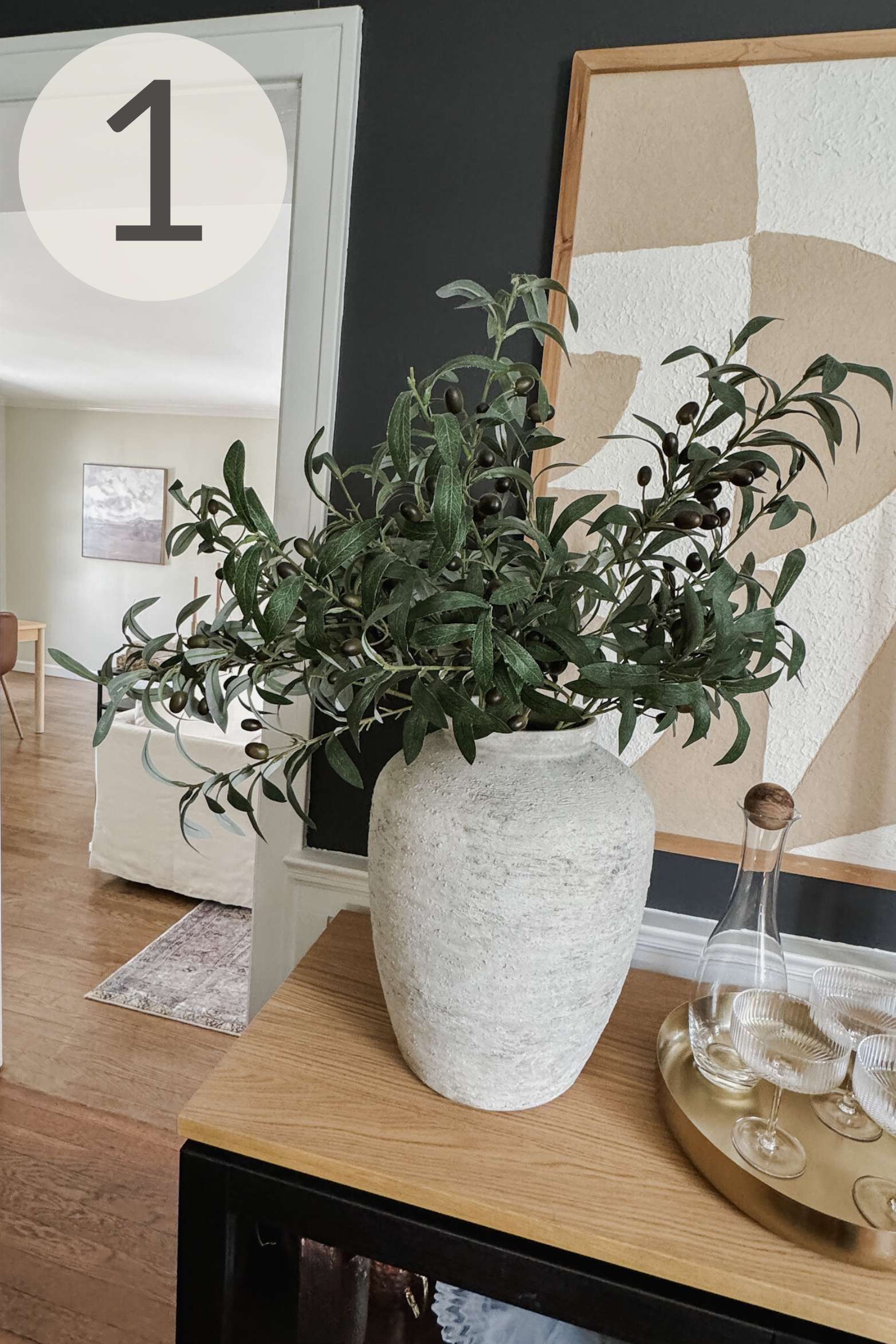 If you’ve been around my content for any length of time, you may have noticed I kinda love plants – usually the fake variety (real don’t last long here). The reason I love them so much is because they instantly bring life into a space visually – even faux does a good job of this – and makes it feel inviting. In this powder room, I chose a tall ceramic vase and stems. The stems can easily be swapped out seasonally to continually update the space with minimal effort.